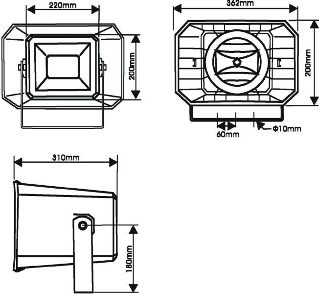 Weatherproof horn speaker with tweeter, 100 V 4.5/9/12.5/25/50 W RMS