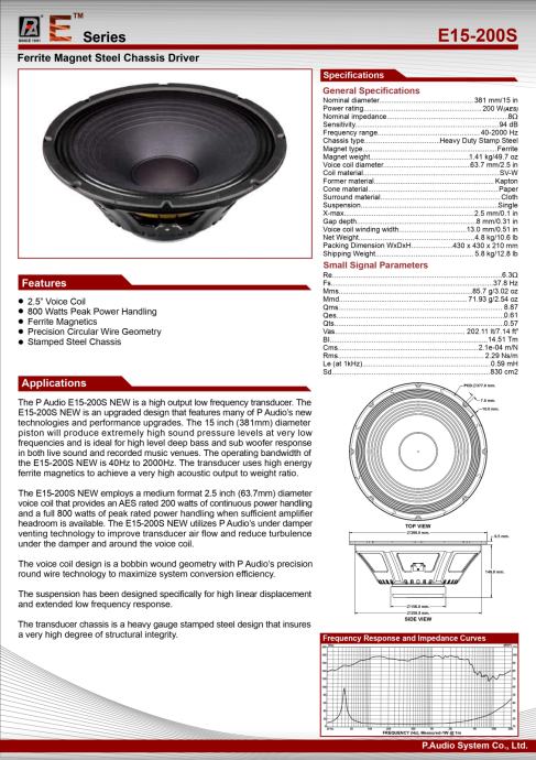 Prodajem PA zvučnik P.Audio E15‑200S (v1)