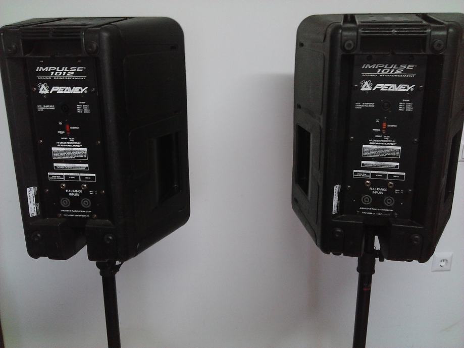 Prodajem dvije zvučne kutije: Peavey Impulse 1012 sa 2 stalka za zvučnike.