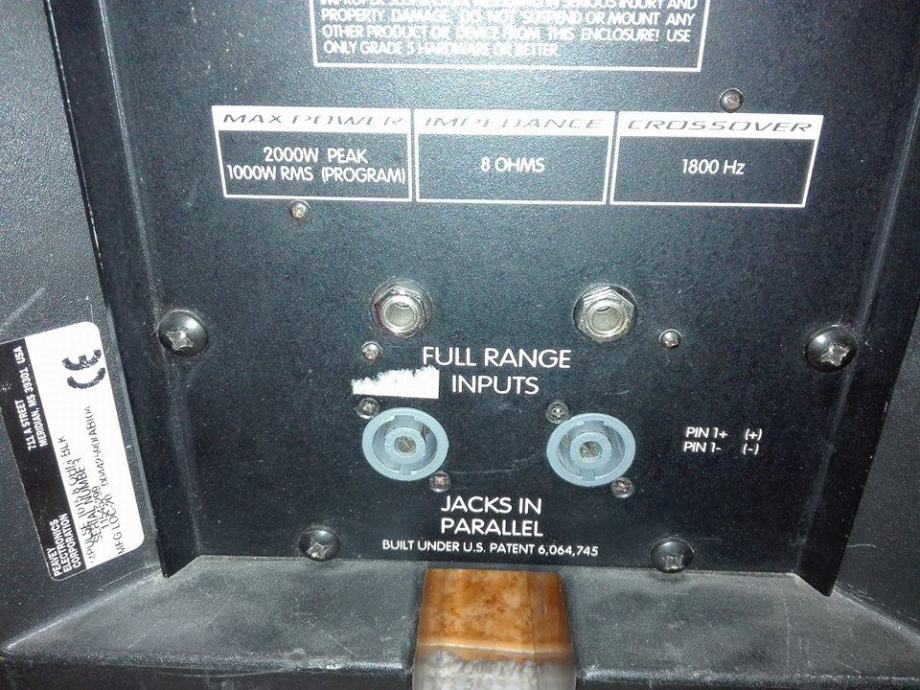 2000 W peak/ 1000 W program. Impendancija 8 ohma.