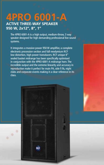 prodajem dvije profesionalne aktivne zvučne kutije RCF 4PRO 6001 A, 3 way - full range - svaka snage 950 w /134 db, u odličnom stanju,