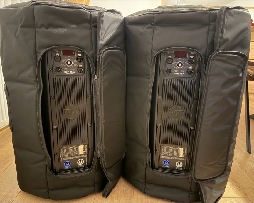 Kutije su kao nove,nikad korištene na svirkama,demo modeli.Originalne rcf navlake i rdnet moduli.