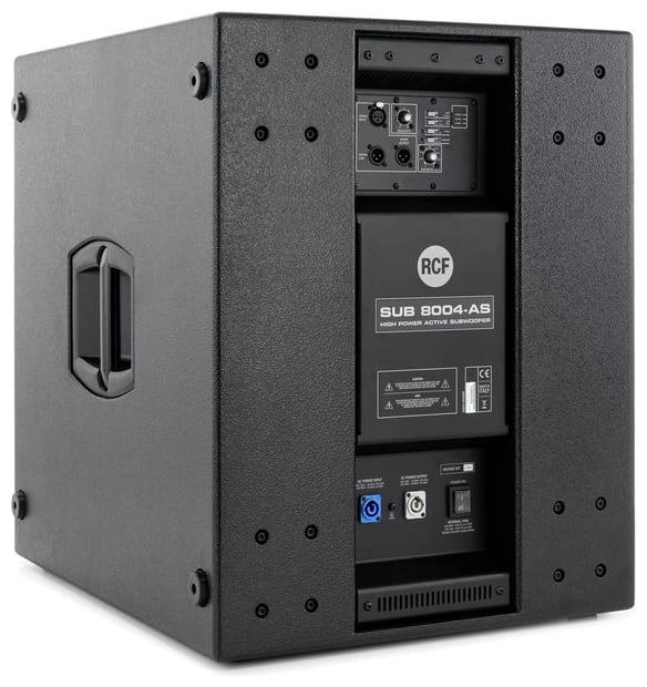 SUB 8004-AS is one of the most powerful 18” subwoofers in pro-sound category. Featuring a high power, hypervented 18” woofer, with 4” inside/outside voice coils, this cabinet is designed to deliver a serious amount of low frequency. Powered by a 1250W digital amplifier module, the SUB 8004-AS can perform in the most demanding situations. The input board includes volume control, deep/punch switch, high pass switch, phase switch, cardioid, time delay.