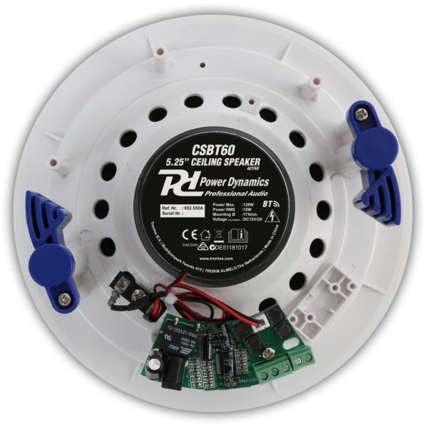 CSBT60 is a set of 2 ceiling speakers, 1 with built-in amplifier and 1 passive that can be connected to the active speaker. The Bluetooth-receiver is ideal for streaming your music wireless to the speakers.The high-quality and easy fit-in ceiling speaker is suitable for installation in almost any material. The ceiling speakers will provide a clear and warm sound and haves a build-in tweeter. Ideal for use in our living room, workspace, garage, showroom, restaurant etc.
