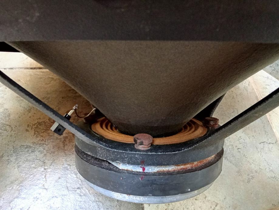 Radi, proizvodi zvuk, ali dijafragma je malo uvučena prema magnetu, što se najbolje vidi kod tzv. spidera. Jedan priključak za kabel (terminal) je razbijen. Fotografije priložene uz oglas prikazuju ovdje oglašeni predmet. Cijena je fiksna. Nudim besplatnu dostavu od zapadnog dijela Rijeke do Lovrana, a dostava putem GLSa u sve ostale krajeve Hrvatske košta 10 €, uz mogućnost plaćanja prilikom preuzimanja. I druge dostavne službe dolaze u obzir, ali, zbog veličine predmeta, dostava u paketomate Box Now i HP Paket24, kao i u kioske Tiska nije moguća.