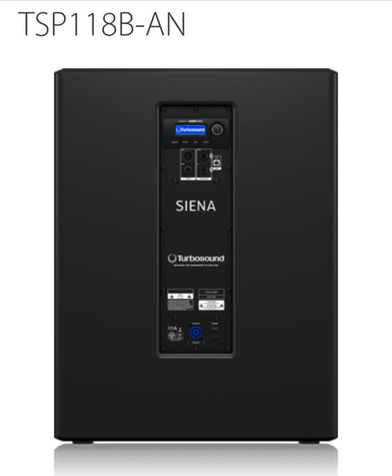Turbosound Siena TSP118B-AN 3000 Watt pojačani subwoofer s KLARK TEKNIK DSP tehnologijom i ULTRANET mrežom Subwoofer s prednjim napajanjem za prijenosne PA aplikacije Snaga 3000 W s KLARK TEKNIK Class D tehnologijom KLARK TEKNIK digitalna obrada signala za potpunu kontrolu sustava ULTRANET digitalna audio mreža povezuje se s mikserima i drugim izvorima 18" niskofrekventnog drajvera s interno/vanjski namotanom glasovnom zavojnicom za rukovanje velikom snagom Potpuno korisničko sučelje s LCD zaslonom za jednostavnu navigaciju Softver za daljinsko upravljanje računalom koji se može preuzeti na turbosound.com