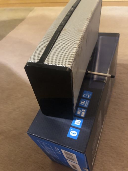 Zvucnik u odlicnom stanju malih dimenzija ali tezak i kvalitetan odlican zvuk rabljen vidljivi znakovi koristenja , sve ispravno baterija odlicna