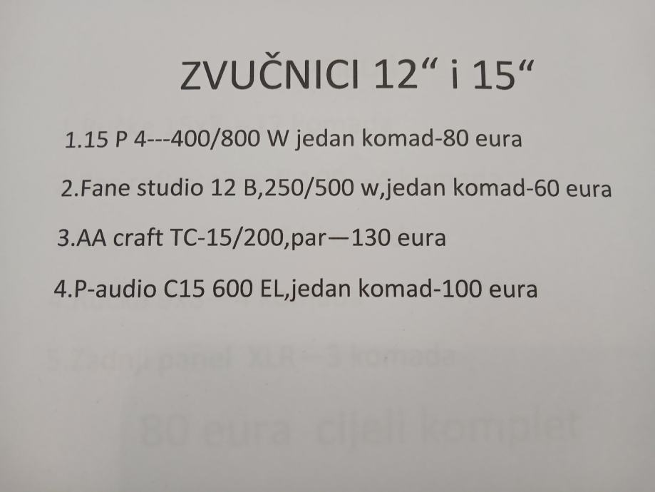 Prodajem po jedan komad zvučnika,tvorničko stanje,sve ispravno i uredno,cijena je navedena za svaki komad posebno,specifikacija u prilogu