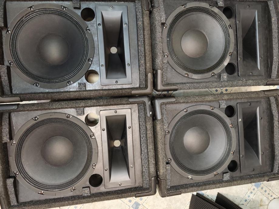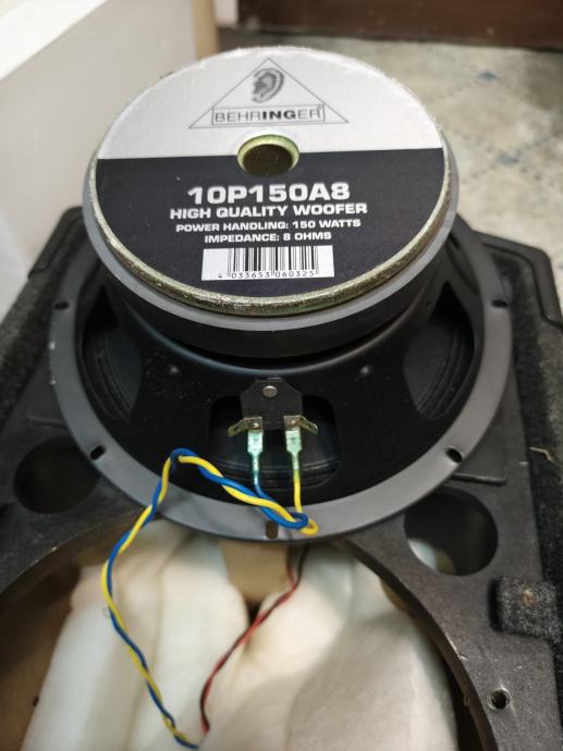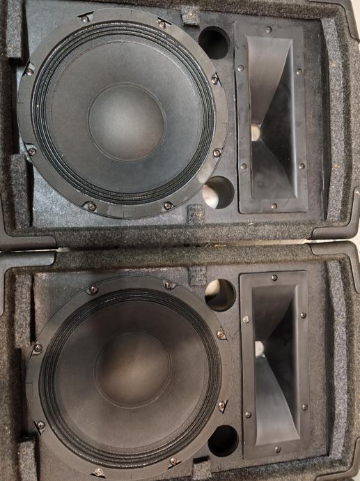 Behringer zvučnici B1020, starija serija dok je Behringer bio kvaliteta, 150/300/600w (danas na tu snagu pišu min. 800w) 10" bass + 1.75" driver, ogromni magneti, robusno napravljeno, sve je u tvorničkom stanju svaka, membrana, šaraf, zavojnica, svaki dio elektronike. Kutije su max sačuvane jer su bile u fiksnoj instalaciji u restoranu u dodatnoj sali gdje su svirali samo povremeno. Kutije rade extra dobro, moguće usporediti sa 3x skupljom opremom (EV, RCF) sa ova 4 komada možete ozvučiti kafiće/fešte/evente 100-150 ljudi extra glasno ili uz adekvatne bass binove 200-400 ljudi.