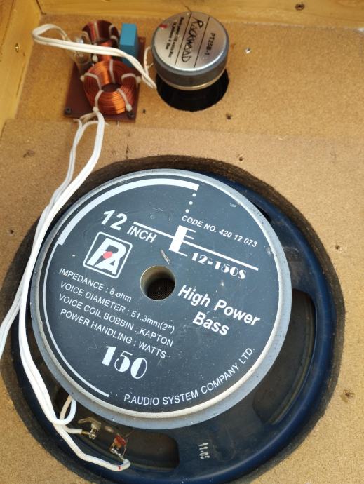 Zvučnici 4 komada, komponente P. Audio bass 12" (30cm) i rockwood 1" visokotonac, u odličnom stanju, cijena po komadu 100€ , fiksna. Prodaja u paru ili sva 4.