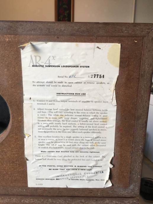 Acoustic Research AR4X XXX RARE welcome back in 60'