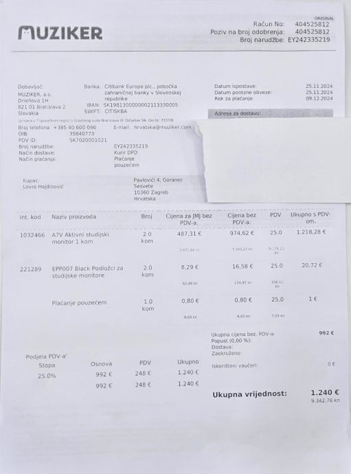 Račun i garancija od