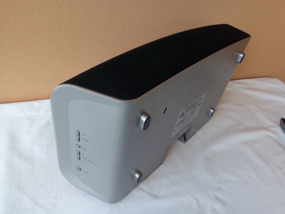 Zapravo, sustav koji se sastoji od aktivnog zvučnika koji se napaja izravno iz utičnice na zidu, a bežični signal dobiva od odašiljača, koji je ujedno punjač za Apple iPod, veza iPoda sa odašiljačem, i FM radio prijemnik. Sustavom se upravlja daljinskim upravljačem ili tipkama koje su na samom zvučniku. Na odašiljač se preko 3.5 mm stereo "AUX" ulaza mogu priključiti razni uređaji, kao što su mobitel, računalo, linijsko pojačalo, bluetooth prijemnik. U cijenu je uračunat prijemnik bluetooth signala, koji se napaja iz zidne utičnice napona 110 -240 V, a bežično primljeni signal šalje kabelom u već spomenuti AUX ulaz na odašiljaču. Na zvučniku ne radi display (svjetli samo pozadina), a kada je sklopka "L-STEREO-R" (na poleđini zvučnika) u poziciji "L" zvučnik daje stereo zvuk, kada je upoziciji "STEREO" daje zvuk samo na lijevom zvučniku, a kada je u poziciji "R" ne daje zvuk. Sve drugo na sustavu radi besprijekorno.
