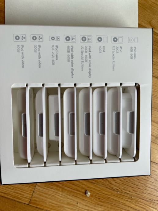Set od 8 adaptera za različite modele Ipod uređaja. Iz cijelog seta korišten je samo jedan.
