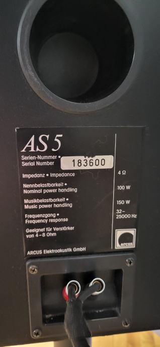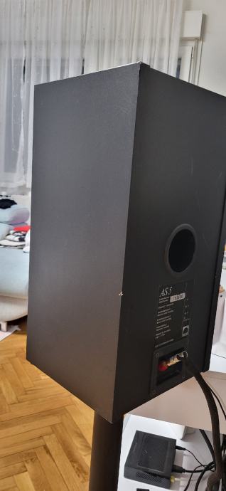 Model AS 5 je 3 way monitor nešto večih dimenzija, sa dva basa od 17 cm i visokotonca koji je u sredini, te bas reflex otvor sa zadnje strane.
