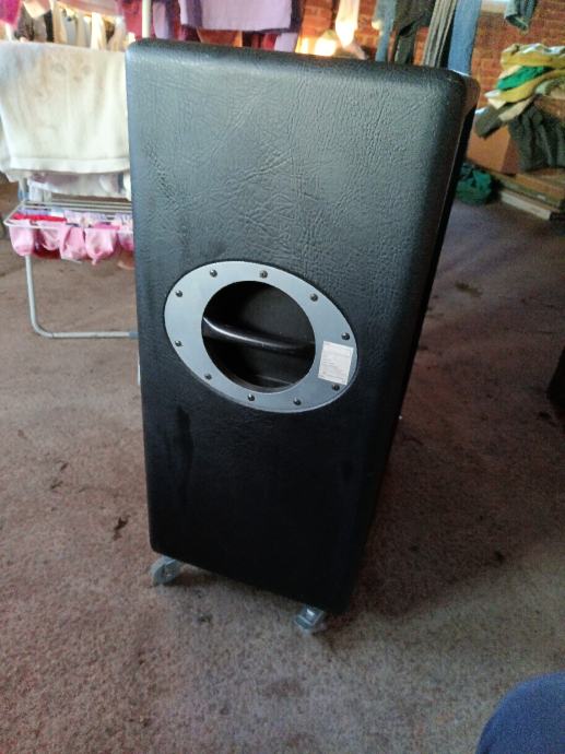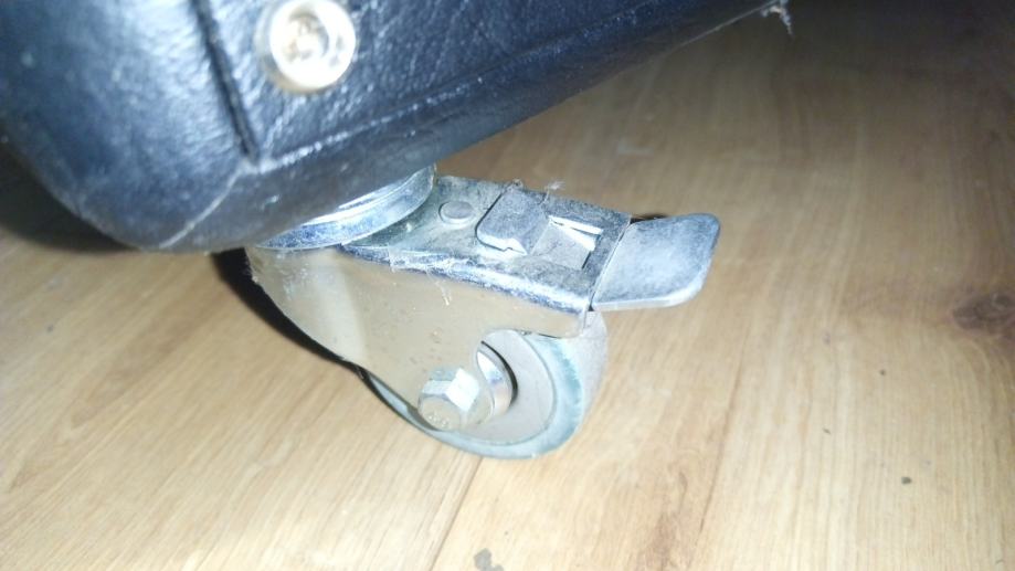 Ima naknadno ugrađene kotače na nogama s stoperima.