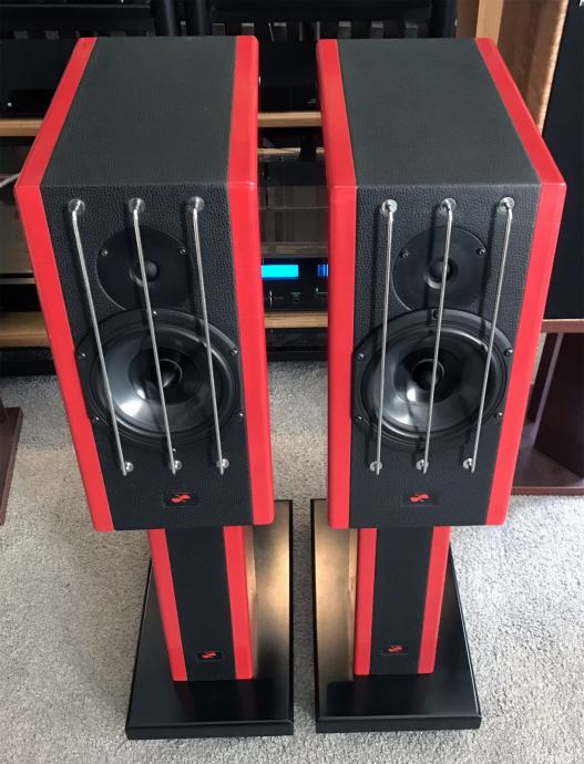 Zvučnici sa originalnim stalcima, stanje 9.5/10 (par manjih ogrebotinica). Radi se o hrvatskom proizvodu odličnog zvuka i zanimljivog dizajna. Zvučnici su tehnički 100% ispravni, dajem na njih jamstvo od 6 mjeseci.