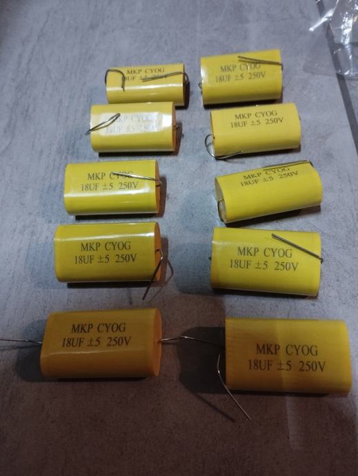 Bipolarni kondenzator za skretnice 18uF 250V, MKP, prodaja samo u kompletu 10kom, 2,50€ / kom
