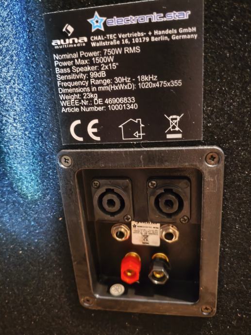 750W RMS - 1500 W Max snage sa snažni zvučnim pritiskom