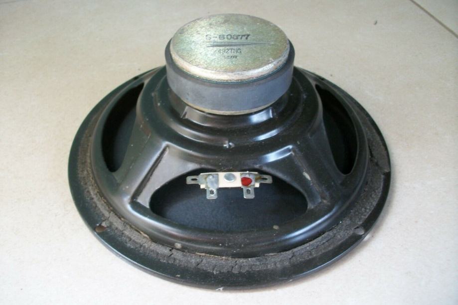 Ispravan je i samo mu je izgužvana središnja kapica i dio membrane oko nje, što ne utječe bitno na zvuk. Ugrađuje se u rupu promjera 175 mm. Otpor je 4 Ohma.