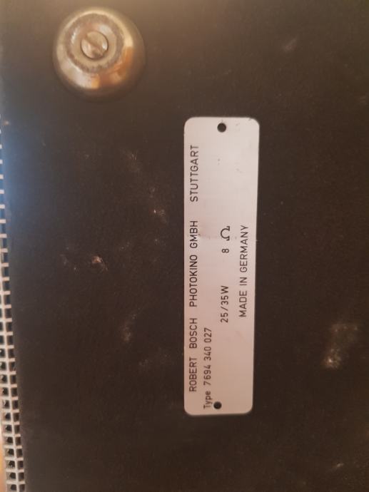 Zvučnik za kino projektor u dobrom stanju. Zvučnici originalni, neotvaran. Kabel i rola originalni i funkcionalni. Odlično zvuči, idealan za lampaša.