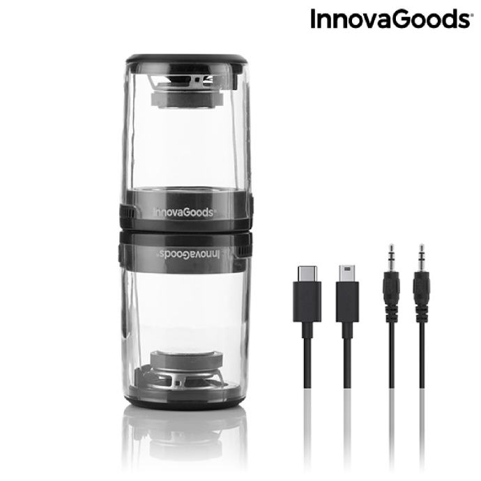 Set od 2 magnetna punjiva bežična zvučnika idealna za ugodno slušanje glazbe ili odgovaranje na pozive zahvaljujući handsfree funkciji. Oboje imaju ugrađeni mikrofon. Mogu se koristiti istovremeno ili svaki zasebno. Zahvaljujući svojoj magnetnoj bazi, mogu se spojiti i koristiti kao jedan snažniji zvučnik ili postaviti ih u razne položaje pričvršćene na metalne površine. Njihov snažni za 360° okružujući stereo zvuk omogućava stvaranje jedinstvenog i ugodnog okruženja za uživanje u najboljoj glazbi, filmovima itd. Zbog svog kompaktnog i bežičnog dizajna, ovi prijenosni zvučnici mogu se lako nositi bilo gdje, kako u zatvorenom tako i na otvorenom (teretana, park, ured, kuhinja, radna soba, dnevni boravak itd.). Osim toga, omogućavaju razne mogućnosti reprodukcije, jer imaju Bluetooth (5.0) funkciju i Aux ulaz. Imaju domet do 10 m i samostalno djelovanje do 2 h, impedancija im je 4 Ω, a osjetljivost > 85 dB. Sadrže jack kabel od 3,5 mm i USB > mikro USB kabel.