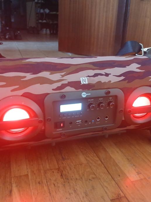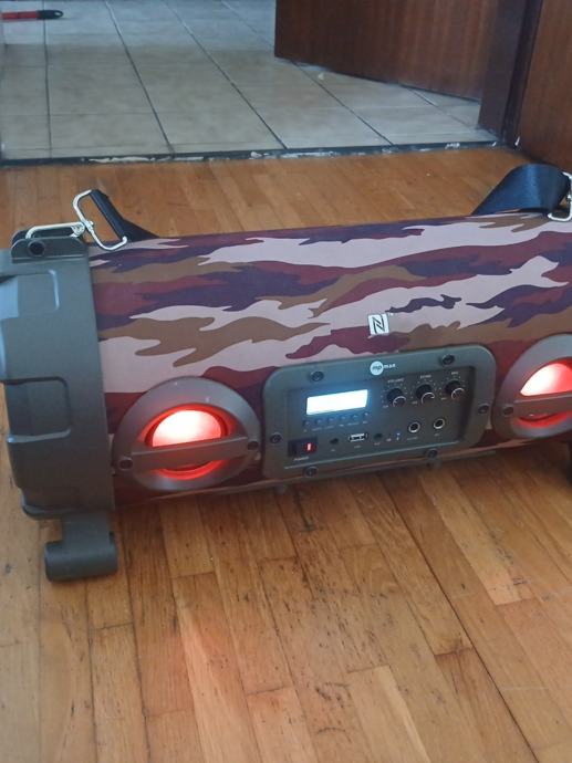 Prijenosni bloutooth zvucnik prodajem za 30 eura. Ima bloutooth, usb, aux, radio, ulaz za gitaru I mikrofon, osvjetljenje u ritmu muzike 097 759 5554