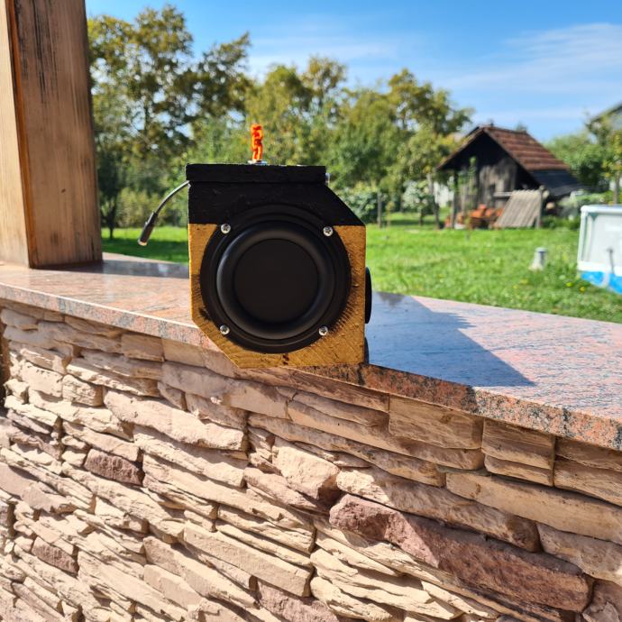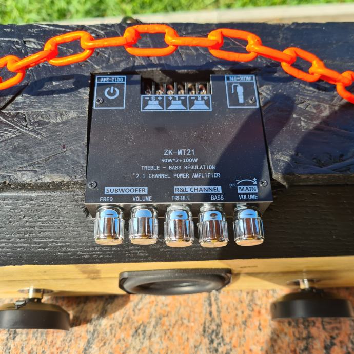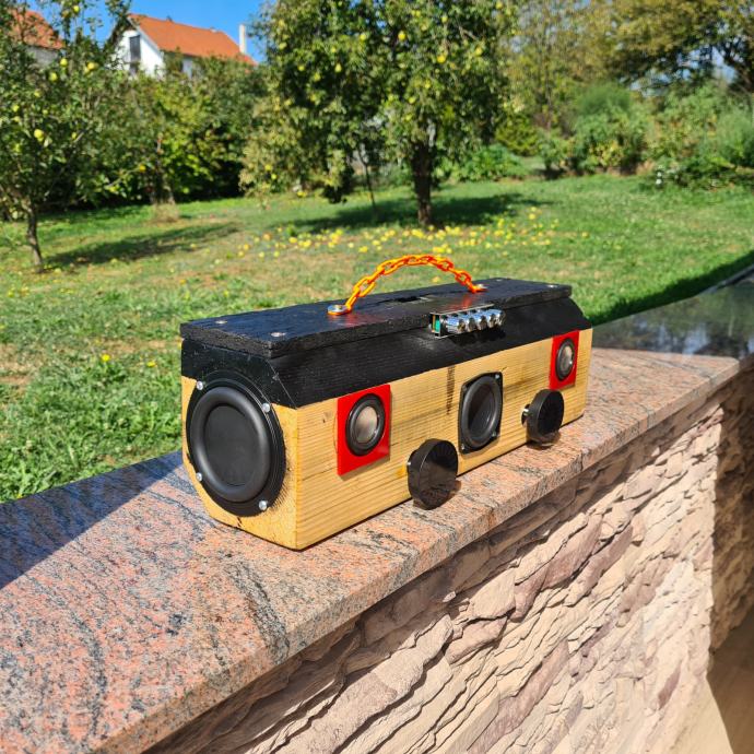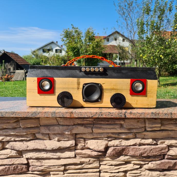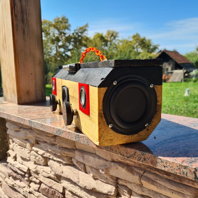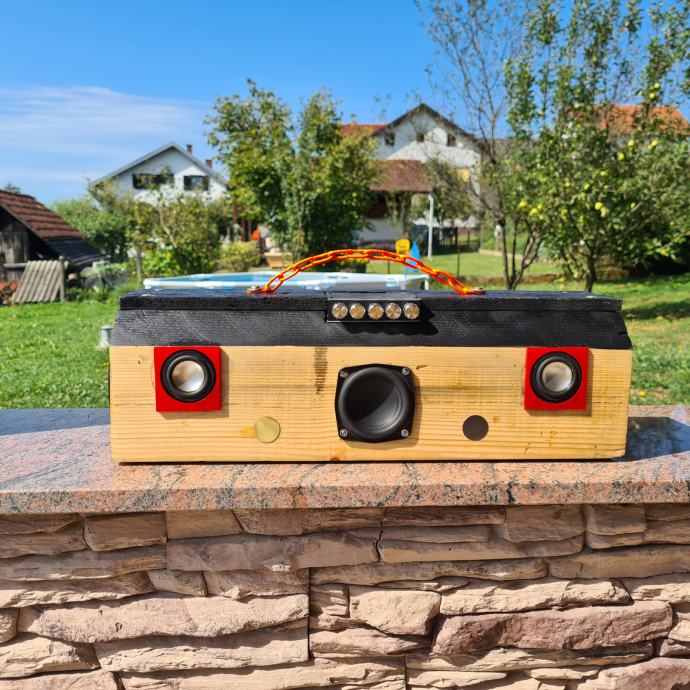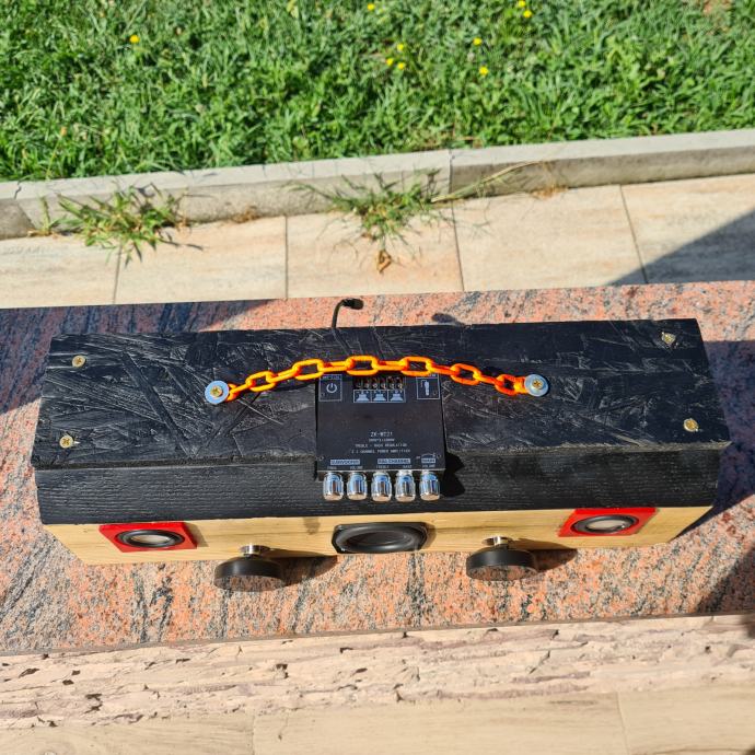 Prodajem bluetooth prenosni zvučnik "KLOCA" ručni rad izrađen od komada jelove grede(kloce).Sastoji se od subwoofera i 2 srednjotonca sa pojačalom ZK-MT21 2.1 kanal 50W+2x100W radi na DC12-24V šta jači napon jača je snaga.Na bočnim stranicama nalaze se gumene membrane za pojačavanje basa a s prednj 2 VU metra koji se mogu maknuti pošto su na magnet.Zvuk je nevjerojatan.