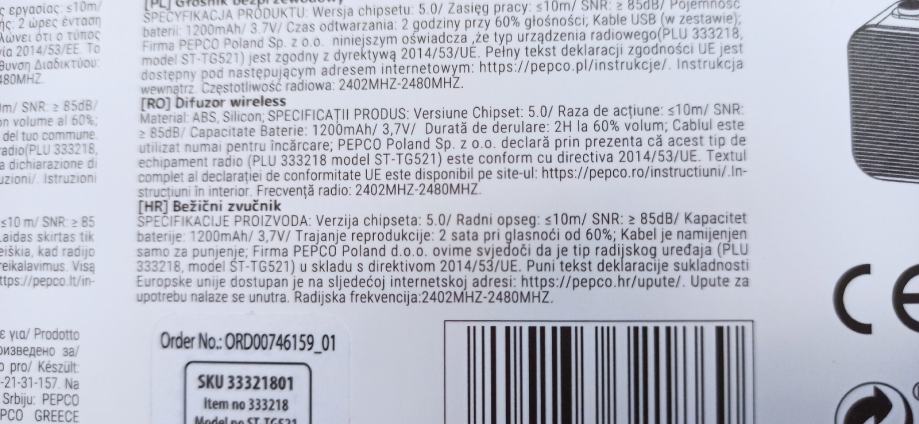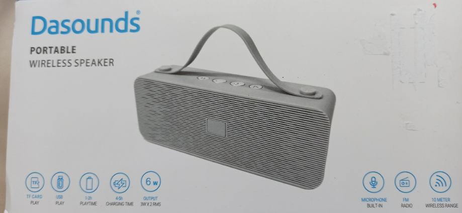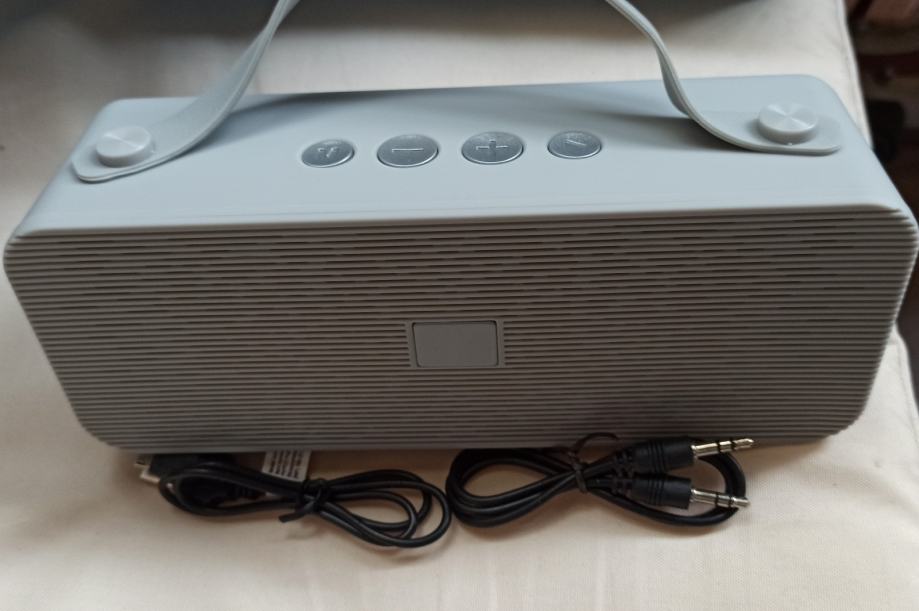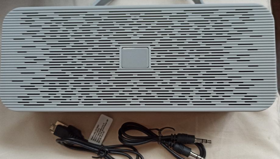 Domet 10 m,kapacitet baterije 1200 mAh/3,7 v.Trajanje reprodukcije 2 h pri glasnoći od 60%.Fm radio,ugrađen mikrofon,jačina zvučnika 2x3 w.Vrijeme punjenja 4-5 h, USB i TF card play.Kabal za punjenje i audio kabal.Novo,nekorišteno.Dostupno u bijeloj boji.Uputstva.