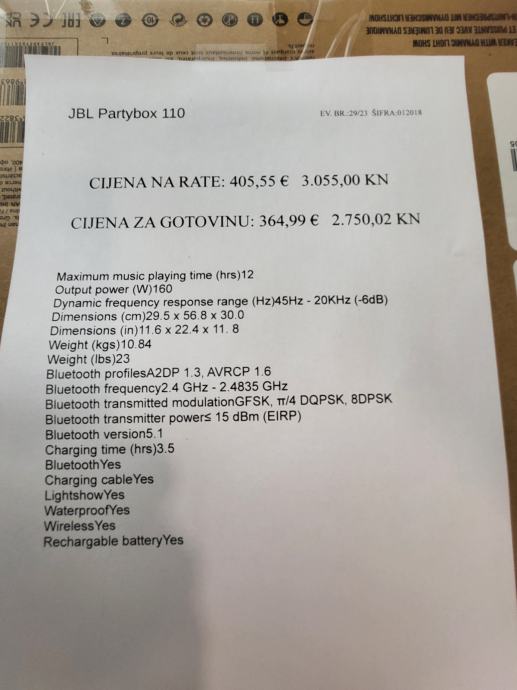 Bluetooth zvucnik JBL 110 novo i nekoristeno. Dostupna dva komada. Jamstvo 24 mjeseca.