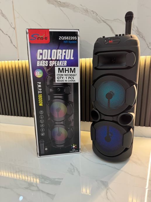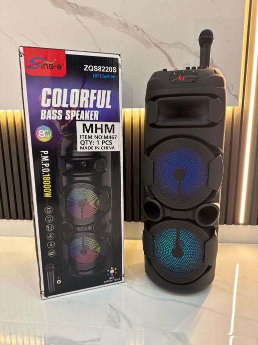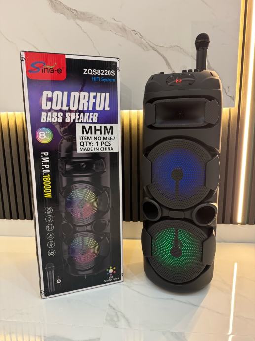 BLUETOOTH ZVUCNIK KARAOKE 2x8 INCHA BEZICNI MIKROFON