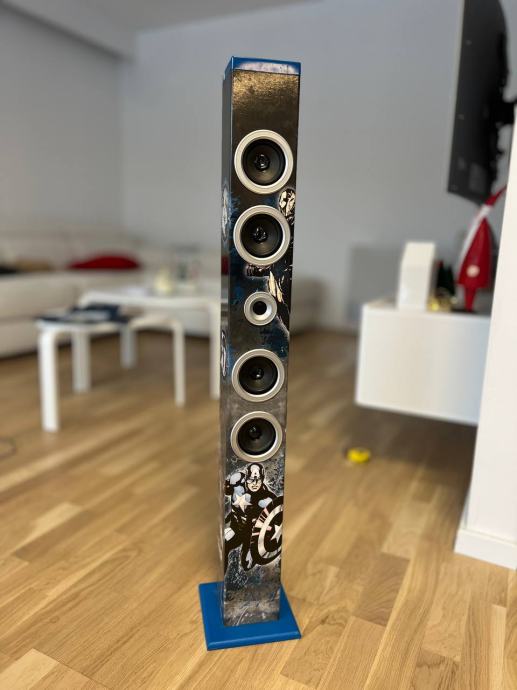 Prodaje se Bluetooth zvučnik: Lexibook Avengers Sound Tower. U odličnom stanju, ispravan, korišten svega nekoliko puta. Idealan za djecu, sa motivima Marvel Avengersa. Spaja se putem Bluetootha ili AUX 3.5mm kabla (u pakiranju).