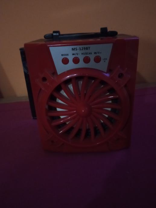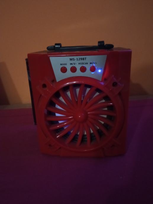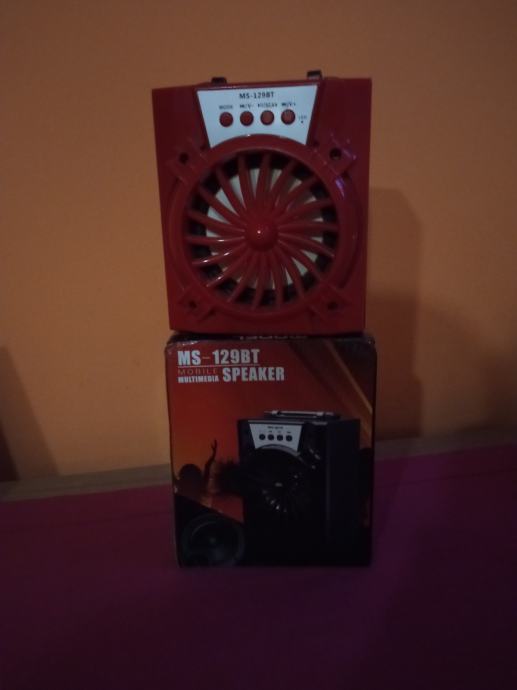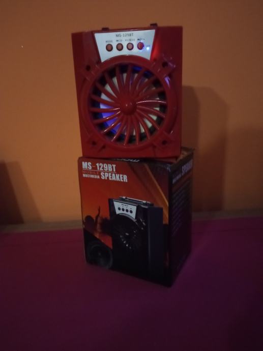Prodajem bluetooth zvučnik MS - 129BT crvene boje mali,potpuno ispravan sadržava radio usb bluetooth i micro sd kartica. Prodajem zbog nekorištenja puni se kao mobitel