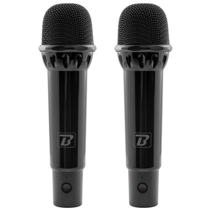 - 2 wireless microphones with cardioid polar pattern with mounting system