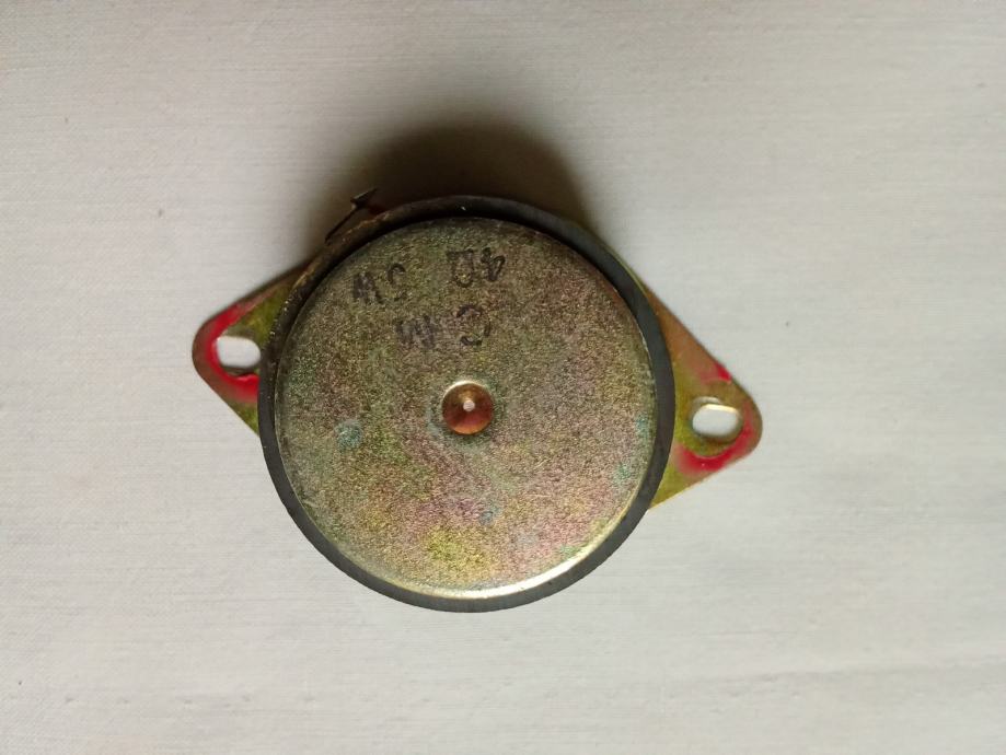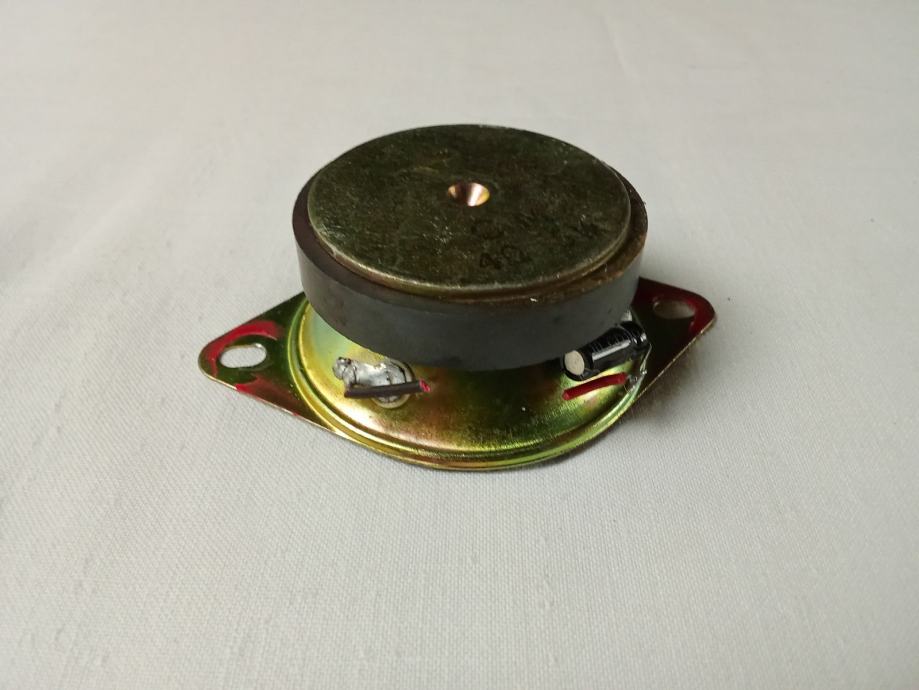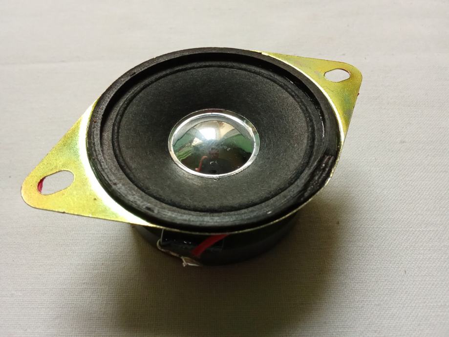 Prodajem samo jedan 1.5-inčni potpuno ispravan i neoštećen visokotonac, neidentificiranog proizvođača i modela. Njegova maksimalna snaga je 5 W, pri otporu 4 Ohma. Vanjski promjer ovjesa oko dijafragme je 40 mm, vanjski promjer metalnog obruča košare 51 mm (u predjelima gdje je najuži), a promjer rupe na kutiji mora biti točno 51 mm ako se pričvršćuje na vanjskoj strani kutije ili najviše 45 mm ako se pričvršćuje na njenoj unutarnjoj strani. Masa predmeta je 96 grama.