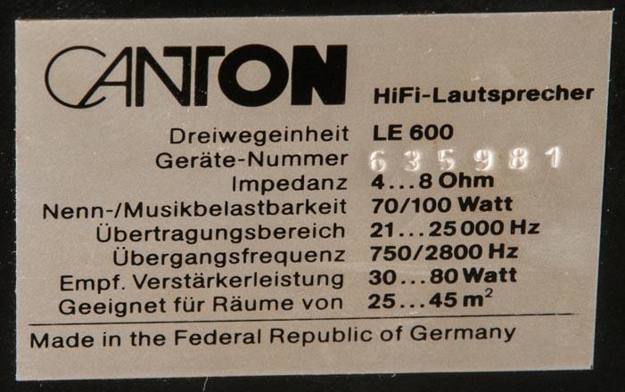 Dakle bas zvučnici iz kutija Canton LE 600 (hi-end kasnih sedamdesetih - tako pročitah negdje). Odlično stanje, bez oštećenja. Na zadnjoj slici je etiketa sa specifikacijama sa LE 600 kutije.
