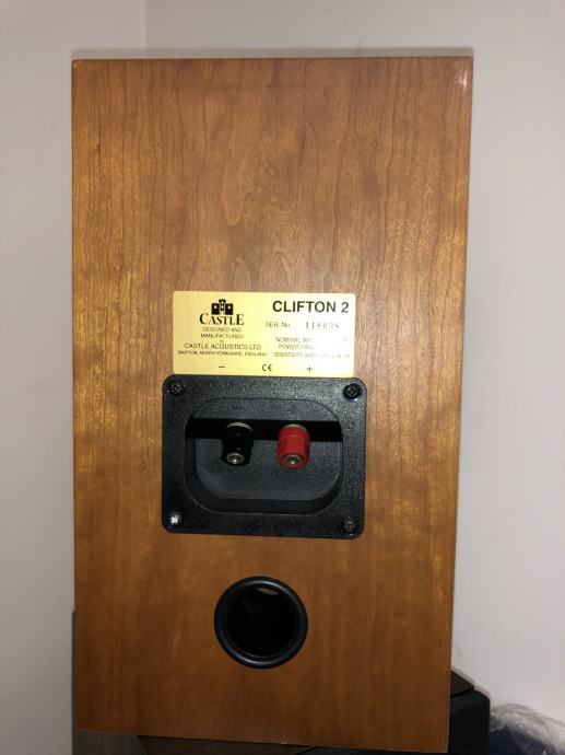 Prodajem odlični zvučnici Castle Clifton 2. Castle Acoustics Ltd su imali jedna lijepa tvornica u Skipton, Yorkshire, i poznati su bili po kvalitet zvuk ali i po vrhunski kvalitet kabinete. Inače su radili kabinete za mnogo poznati Engleske marke. Nažalost Castle su završili u stečaj prije neki 15 G, i Kinezi su kupili su trademark Castle. International Audio Group je umbrella firma koji proizvodi zvučnici u Kini koji nemaju veze sa stari Engleske marke.