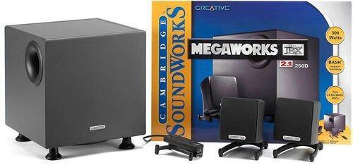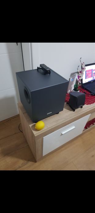 Najbolji 2.1 zvučnici za PC ikad. 300 watta RMS-a (prava snaga, ne samo deklaracija), vrhunski zvuk, kontroler odvojen od zvučnika i s ulazom za slušalice, ulazi na subwoofer-u: digital in i dva analog in (3.5 mm jack), cinch izlazi za satelite, sateliti se spajaju na kabel klemama. Sve u odličnom stanju, neoštećeno, ispravno.