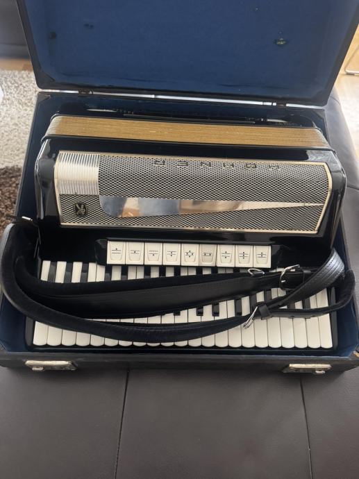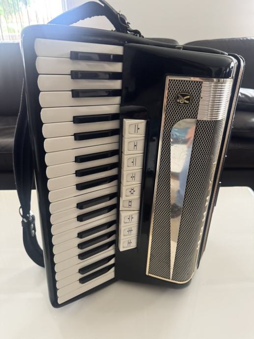 Harmonika Hohner Lucia4p sa 96 basova pogodna za glazbenu školu.Harmonika je u izvrsnom stanju široki remeni zaštitni jastuk sa tvrdim koferom.Nazvati na br.mobitela 098-241-410 na poruke i mailove ne odgovaram!