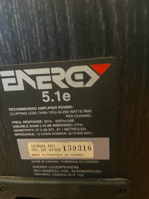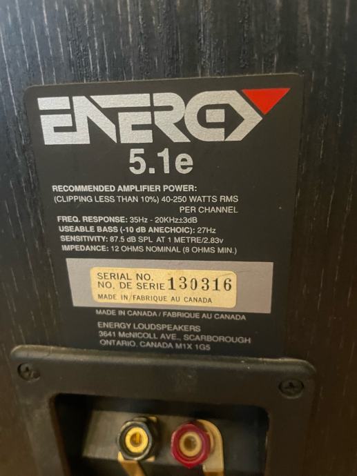Impedancija: 12 Ohms nominalna - 8 Ohms minimalna