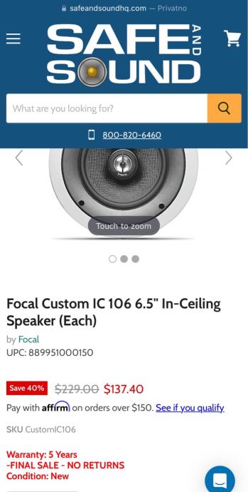 In-ceiling speakers — like Focal's Custom IC 106 — are a solid choice for enjoying music and movies while saving floor or shelf space. Use a pair as part of a whole-house stereo system, or as the overhead effects channels in your Focal surround sound system.