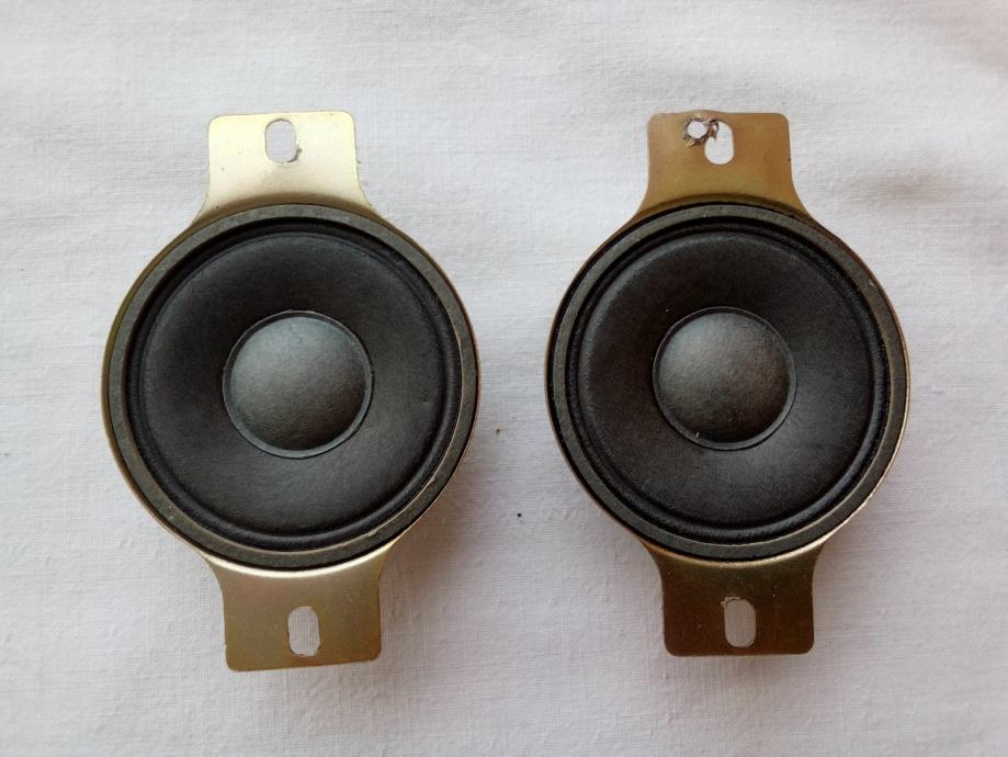 Rade normalno. Masa svakog je 140 grama, snaga im nije deklarirana, ali očekujem najviše 20 Watta po zvučniku. Na magnetu piše da im je otpor 8 Ohma. Vanjski promjer ovjesa je 45 mm, a promjer rupe 50 mm ako se pričvršćuju sa vanjske strane kutije ili 40-45 mm ako se pričvršćuju sa unutarnje.