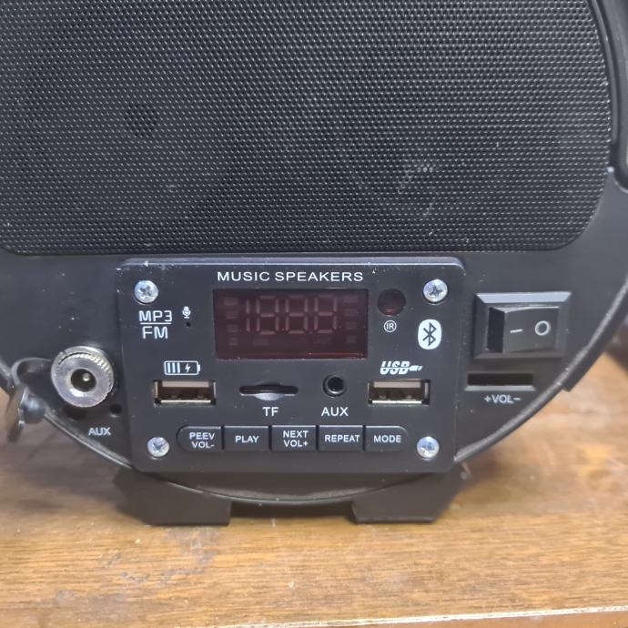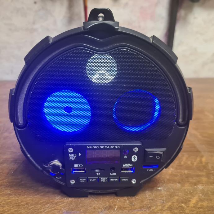 Prodajem Auna bluetooth zvučnik ( samo je kučište od AUNE) Bas i srednji (dvosistemski) 50 wata visoki 20wata pojačalo 2x40 wata sa ugrađenom led rasvjetom i pojačanom litij ionskom baterijom 12v.Zvučnik rastura