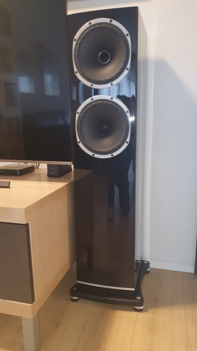 Fyne Audio F502 zvučnici u crnoj piano gloss verziji. Plaćeni 3200 eura. Težina zvučnika je 25,2 kg svaki.Stari su 3 godine. Rade bez problema na svim pojačalima od 30- 200W. Moguće ih je poslušati u Zagrebu.Ne šaljem poštom zbog dimenzija i težine.