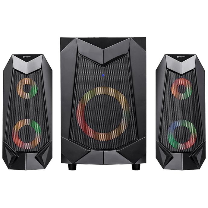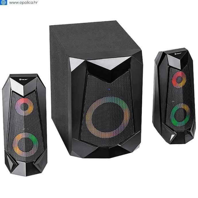 Zvučnici 2.1 sa RGB osvjetljenjem, Bluetooth. Uronite u izvanrednu kvalitetu zvuka koju nudi Tracer Hi-Cube set i ponovno otkrijte jedinstveni zvuk svojih omiljenih pjesama. Tracer Hi-Cube multimedijski je set koji radi u sustavu 2.1 - savršeno odgovara korisnicima koji traže visoku kvalitetu i intenzitet zvuka. Jedinstveni, gaming dizajn i besprijekoran zvuk subwoofer-a i dva satelita čine ovaj set neophodnim za svakog ljubitelja glazbe. Snaga 20 W RMS, 2.1, frekvencija 35 Hz - 20 kHz, 3.5 mm jack, materijal izrade: Subwoofer drvo, sateliti sintetički materijal, Bluetooth