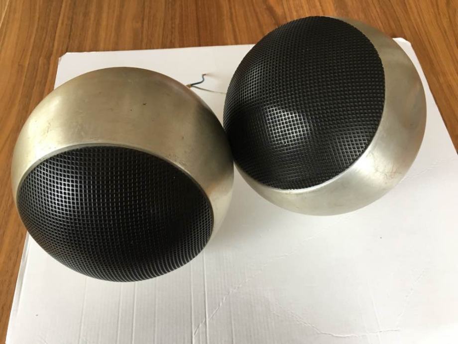 Zvučnici su ispravni ali potrebna je estetska restauracija. Ovi zvučnici u obliku kugle mogu visjeti ili stajati na posebnom stalku. Molim pogledati više informacija na Internetu.