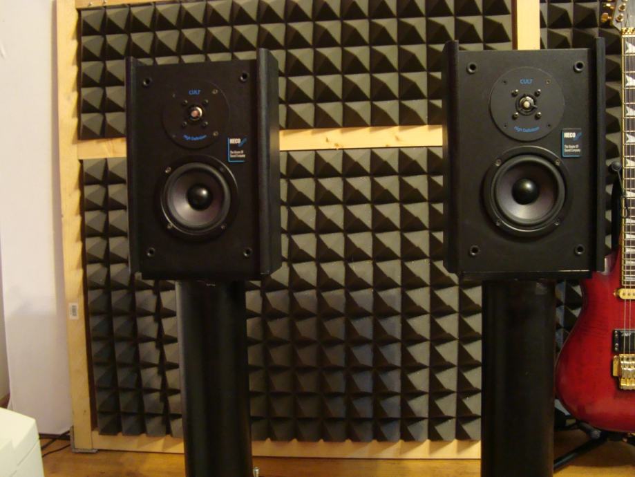 Flat kutije, duboke pozornice, pogodne za zidnu montažu, štede prostor ne na uštrb zvuka, bas reflex, 80w, 8ohma, kultni High Definition Hecov visokotonac. Mogu poslužiti i kao izvrstan surround za one koji nemaju previše prostora, a ne žele se odreći dobrog zvuka. Moguća zamjena za stalke za mikrofon.