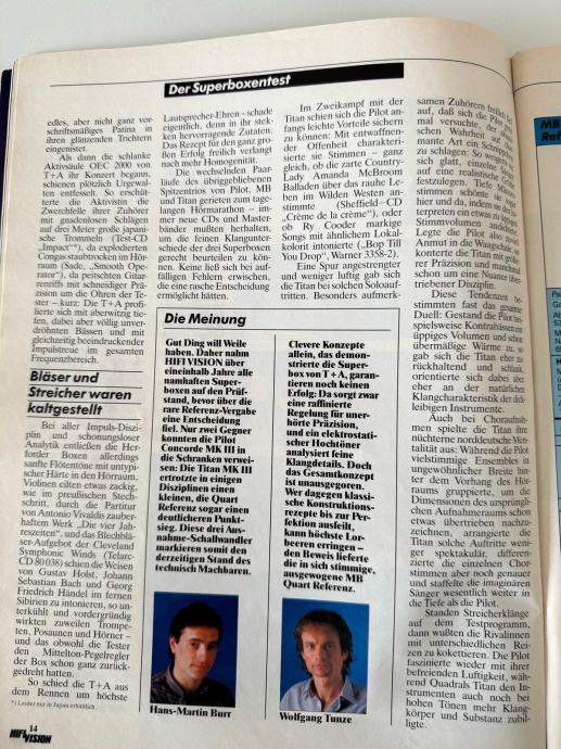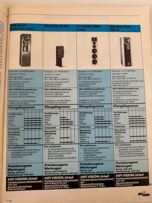 Prema HiFi-Visionu iz 1986., ovi zvučnici su bili najbolji u svojoj cjenovnoj klasi do 30.000 DM! Za taj iznos se tada mogao kupiti novi Audi 100, što bi danas odgovaralo kupnji novog Audija A6 za oko 60.000 eura!
