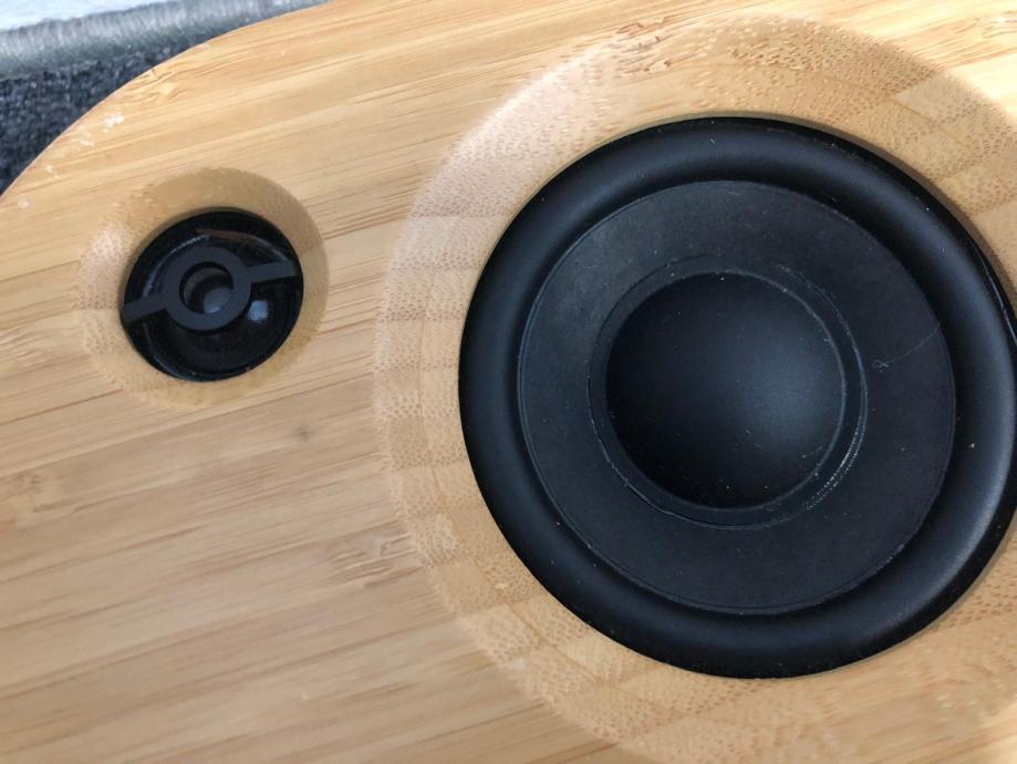 Izlazna snaga Maksimalno 40 W Zvučnik 2 x 25 mm visokotonca, 2 x 114,3 mm visokotonaca Podržani A2DP Bluetooth profili Podržani audio kodeci aptX Bežično područje 15 m 1 x 3,5 mm stereo (audio) ulazi Litij-ionski tip baterije AC ulazna snaga 100 do 240 VAC, 50/60 Hz Utor za memorijsku karticu br. Materijali: Tkanina, plastika, drvo.