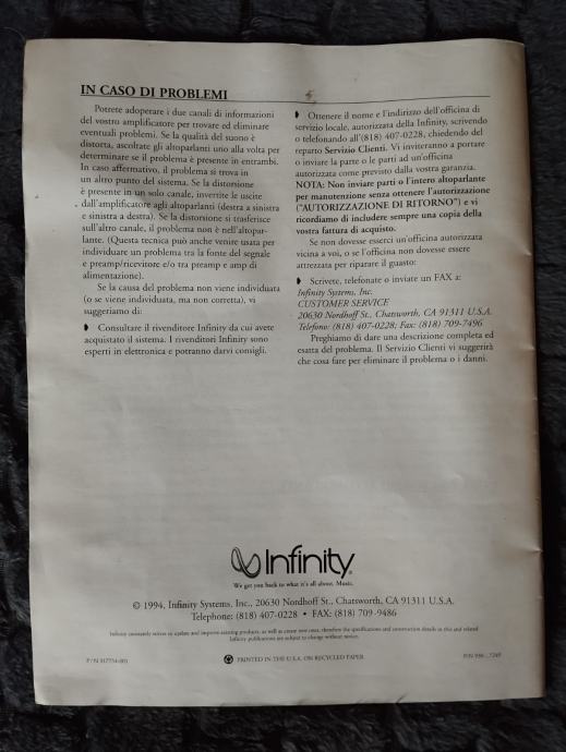 Prodajem zvučnike Infinity Kappa 8.2i
